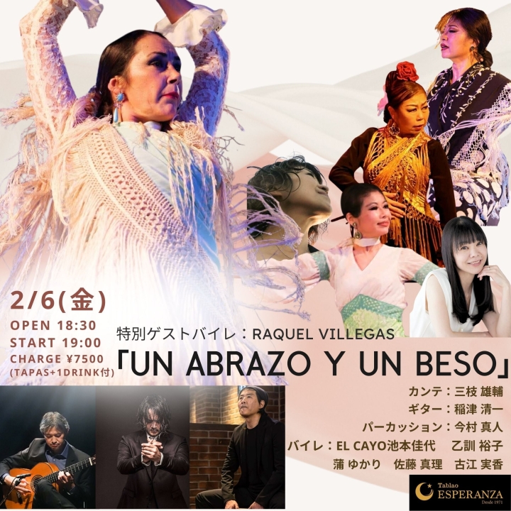 明けましておめでとうございます。本年も充実の年となりますよう精進を誓うと共に皆様のご健康、ご多幸をお祈り申し上げます!!! 新年早々ではございますが、2月24日エスペランサLIVE 「Un abrazo y Un beso」のWEBフライヤーをUPさせていただきます!スペインアーティストラケルビジェガスさんをスペシャルゲストに、皆様のお越しをお待ちいたしております!!! |
