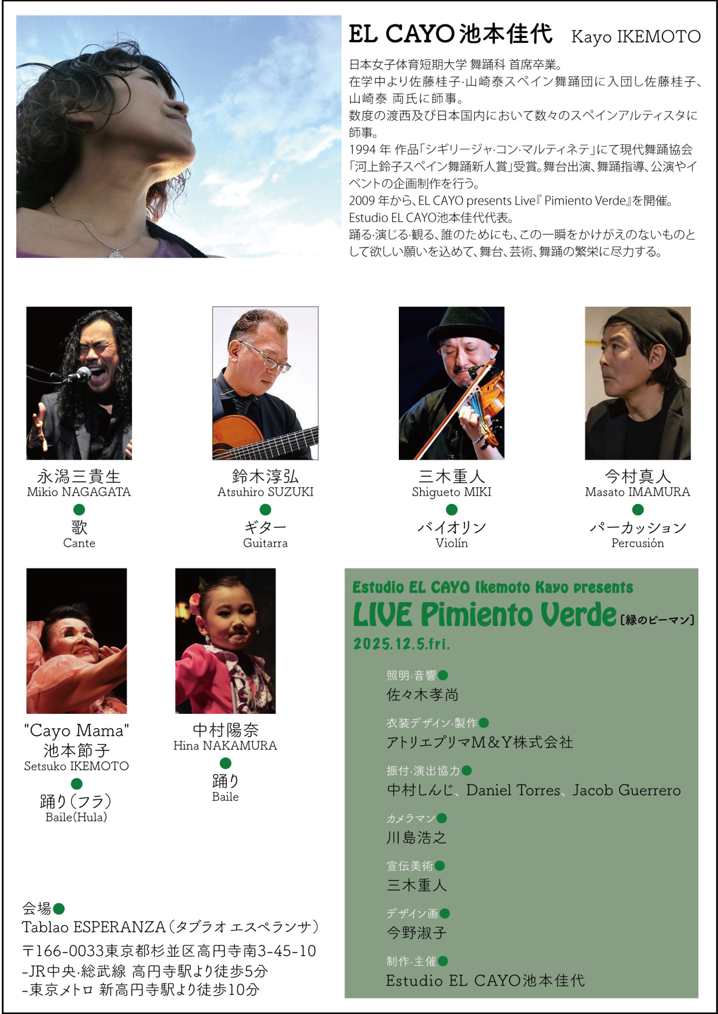 2025年12月5日 LIVE ”Pimiento Verde 緑のピーマン”at タブラオエスペランサ開催のお知らせ!